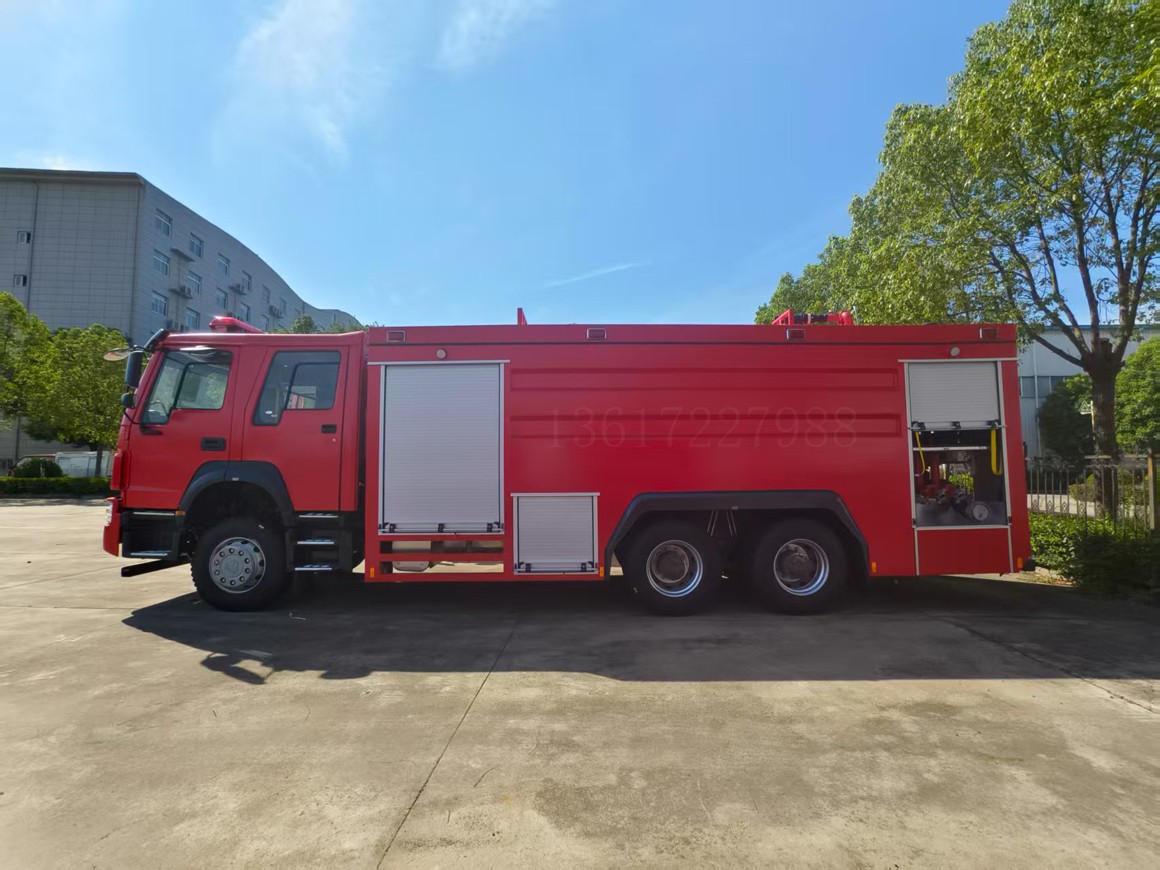 出口版16噸泡沫消防車,采用豪沃右舵底盤改裝,罐體容積16立方米,配備CB10/60消防泵,60消防炮,整車、器材采用英式接口。