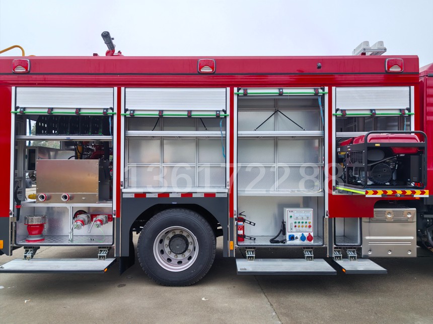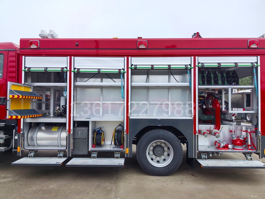 汕德卡壓縮空氣泡沫消防車采用中國重汽集團濟南商用車有限公司生產的汕德卡ZZ5206N471GF5(國六)消防車底盤改裝而成。整車由消防員乘員室和車身兩大部分組成,乘員室為原裝雙排駕駛室,可乘坐2+4人,該車為內藏罐結構,車身前部為器材箱,中部為水罐,水罐兩側為器材箱,后部為泵房。載液罐體為304不銹鋼,與底盤采用彈性連接,載水4500L,泡沫液量1000 L(A,B類各500L),裝備了茸申CB10/60-RS消防泵,德川模塊式DC-CAFS60/45M壓縮空氣泡沫滅火系統,廣泛應用于地下、石油、化工、大型商場、高層住宅、重點文物、車站碼頭等。特別節省水和泡沫液,高效環保,而且不會造成二次傷害。 |