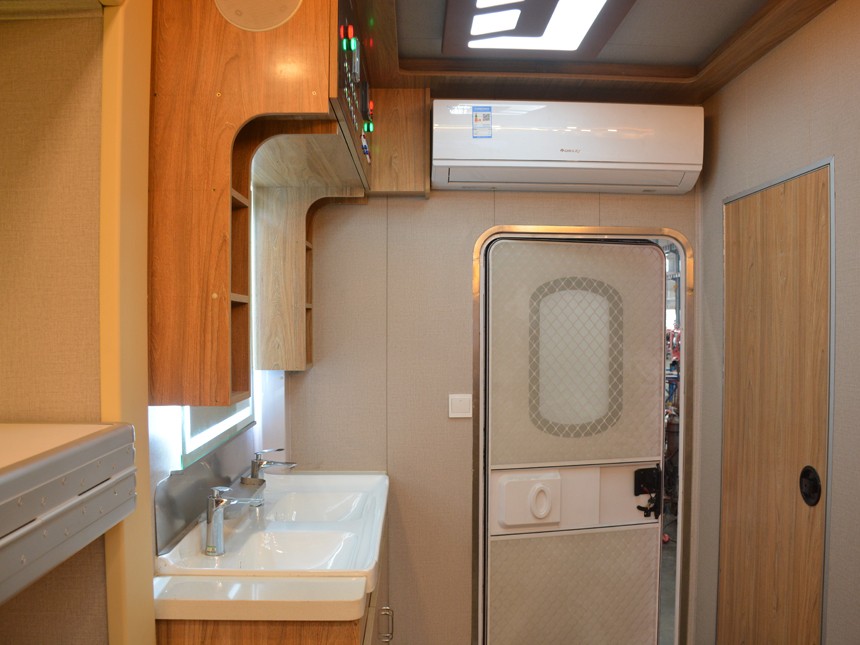 專用功能:室內住宿設備為12組高低床,可提供24人舒適宿營;配備有冷暖空氣調節系統、電視影音系統、照明系統、儲物柜、床頭燈及開關插座等必要生活設施;獨立衛生間配備有盥洗臺、LED背光整容鏡、強制通風換氣裝置、雙層外推窗、節水型不銹鋼便池等設施;發電機功率5KW,額定電壓220V,供電時長約6-10小時。 | |||